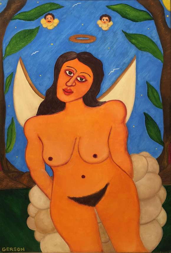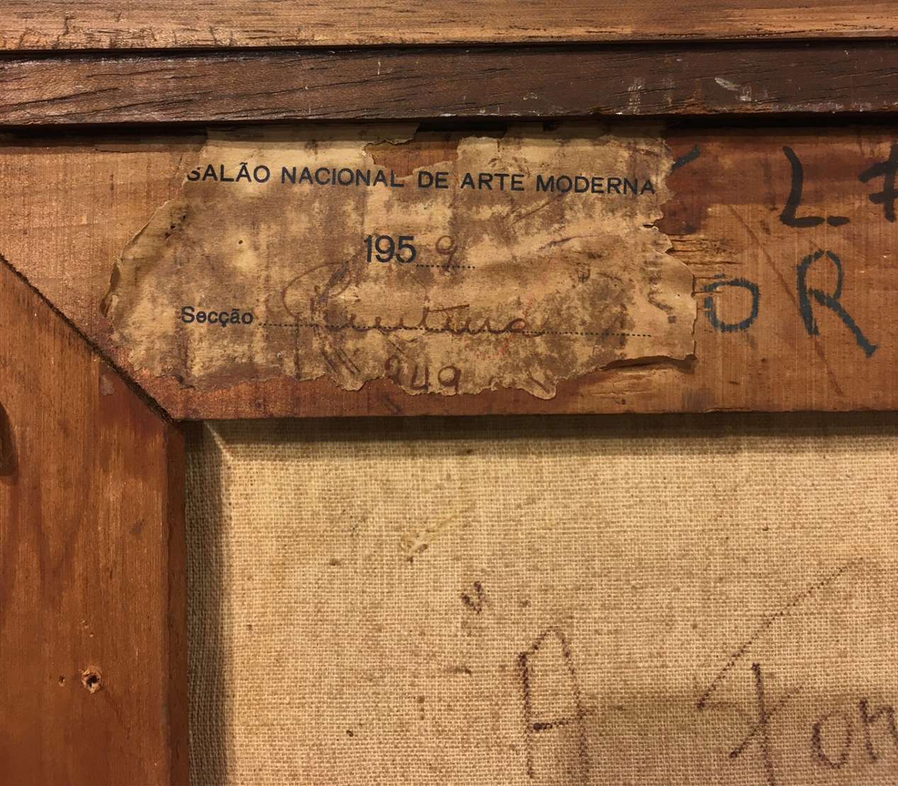 Óleo s/ chapa madeira, ass. inf. esq. e ass. dat. Maio 2000 sit. Rio, tit. com inscrições do artista e etiqueta do Mu...