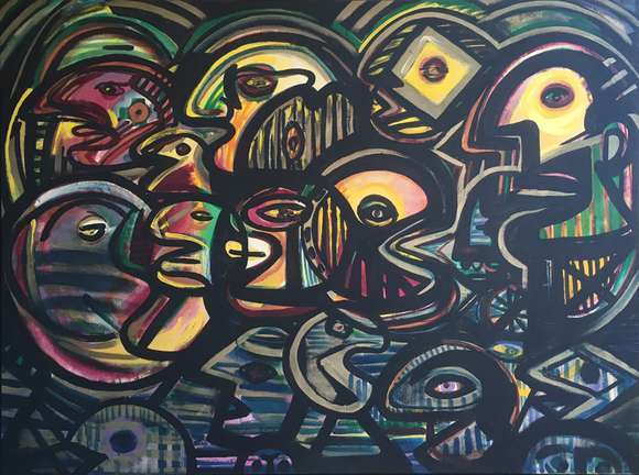 Desenho a tinta acrílica s/ papel, ass. duas vezes dat. 1984 inf. dir.