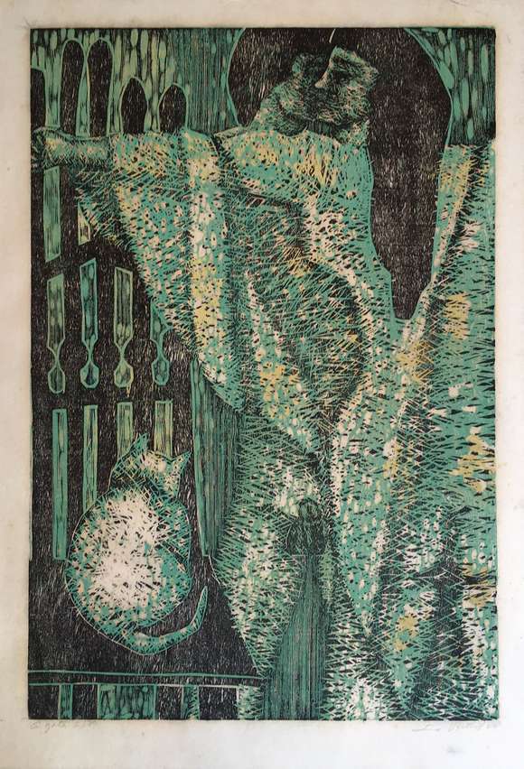 Xilogravura a cores s/ papel, ass. dat. 1970, titulado e numerada 5/70 inf. esq.