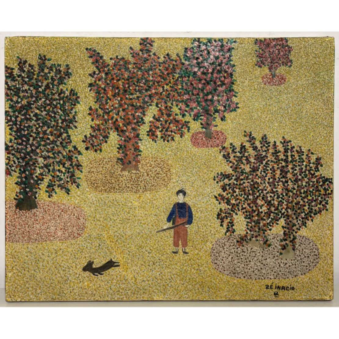 Moacir Andrade. A Colheita de Pequi. Óleo s/ tela colada em madeira, ass. sit. Amazonas e dat. 1973 inf. dir. 120 x 1...