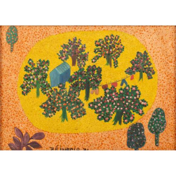 Zé Inácio. A Rocinha. Óleo s/ tela, ass. dat. 71 inf. esq. e ass. dat. titulado no verso. 23,5 x 32cm