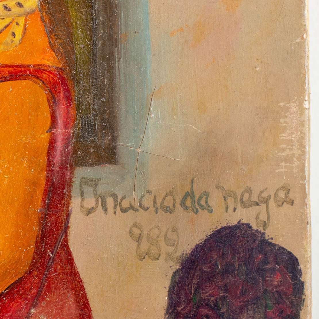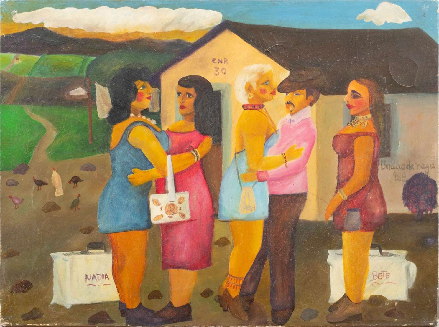 Inácio da Nega. Nadia e Bete. Óleo s/ tela, ass. dat. 982 lat. dir. 30 x 40cm. Apresenta craquelês na parte sup.