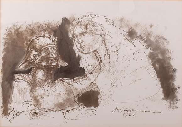 Nanquim s/ papel, ass. dat. 75 e com dedicatória lat. dir. 66 x 101cm