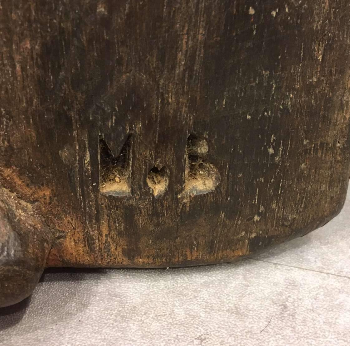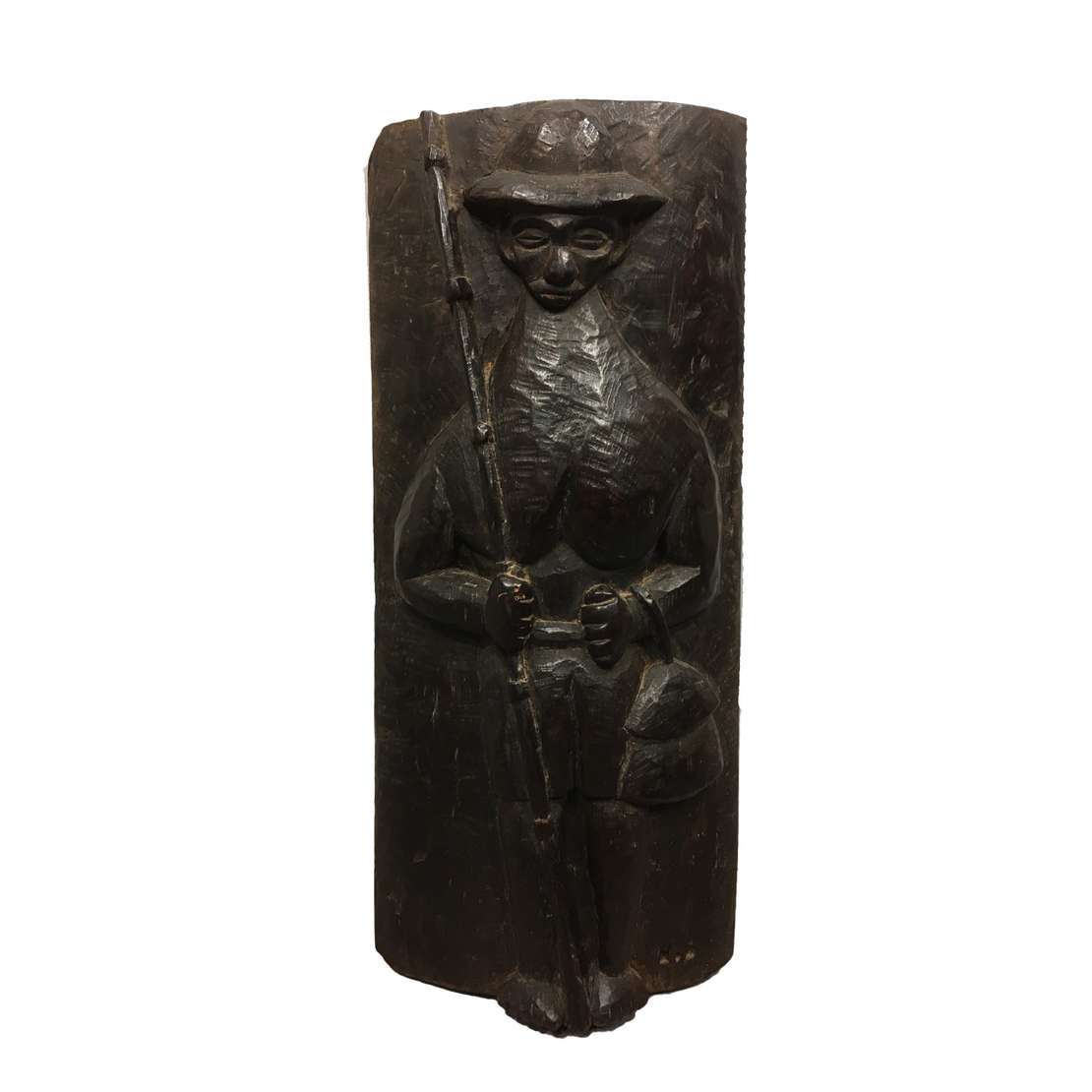 Escultura em madeira entalhada, ass. inf. dir.