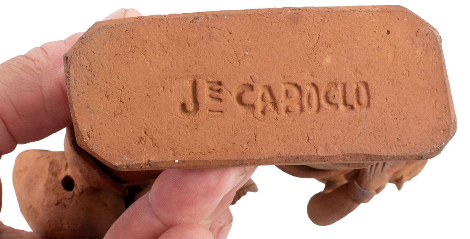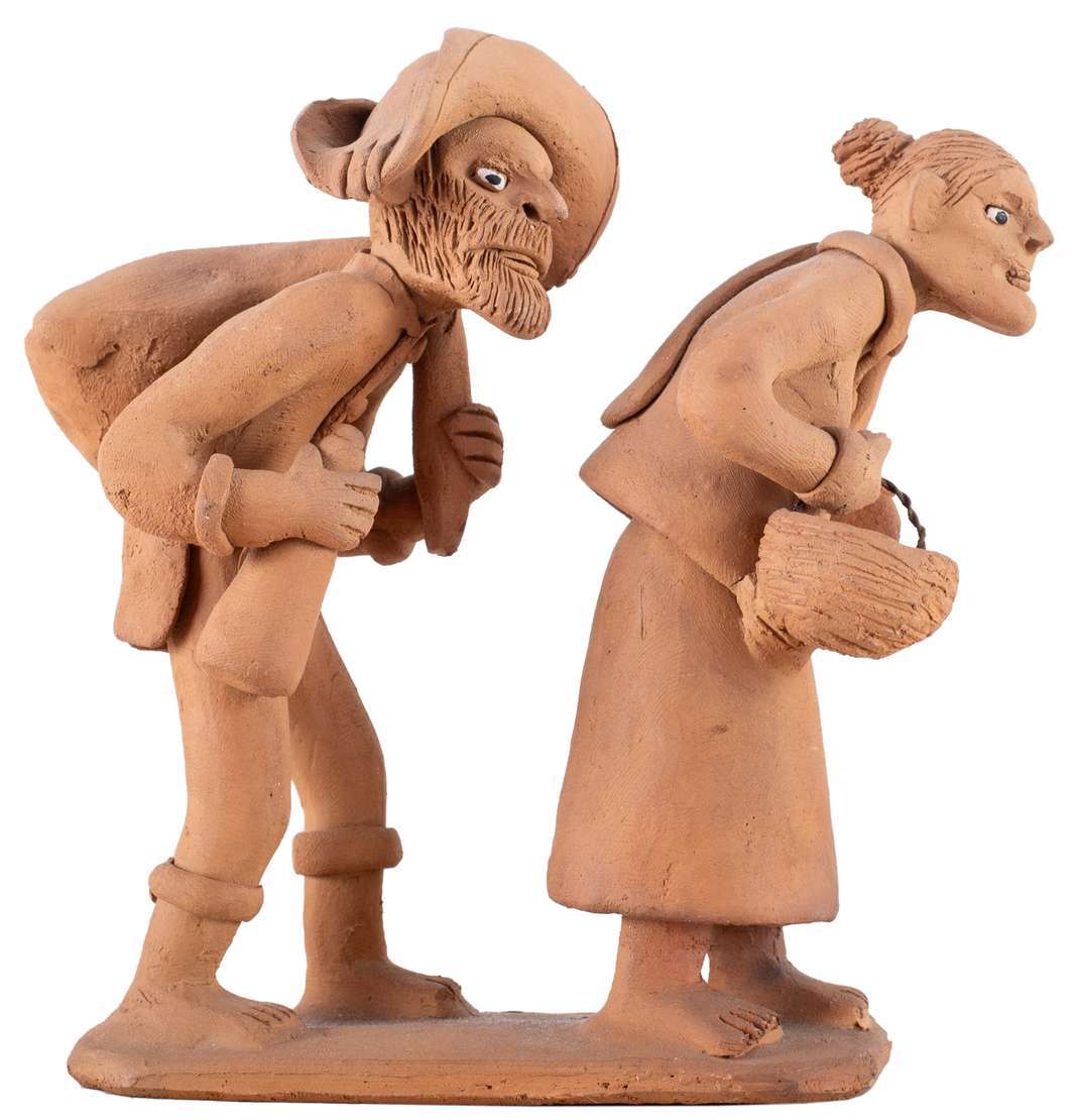 Escultura em cerâmica, ass. dat. 06/2015 e sit. Coqueiro Campo, Vale do Jequitinhonha, MG na parte de trás