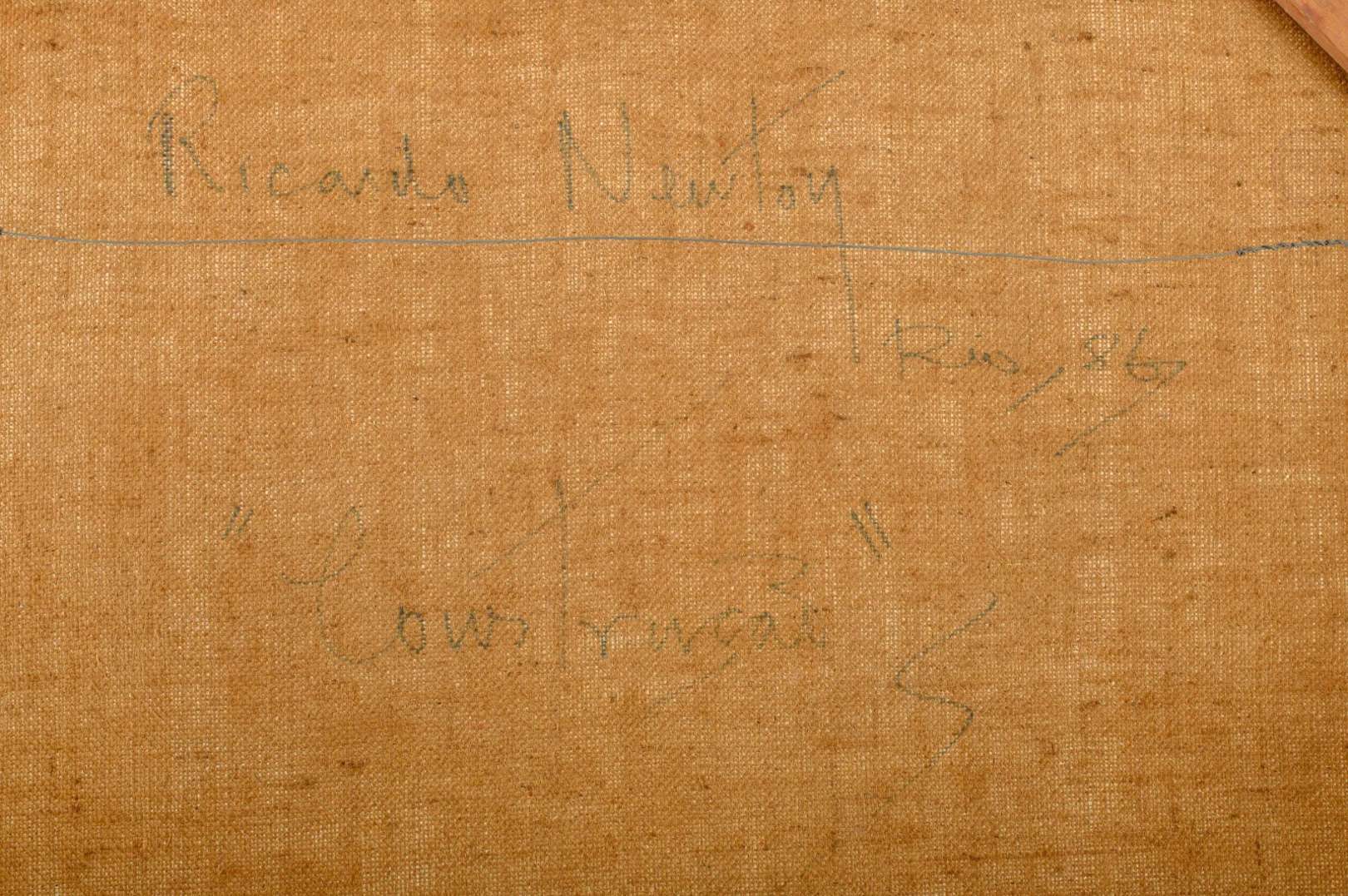 Óleo s/ tela colada em cartão, ass. inf. esq. Com a moldura trabalhada pela artista.