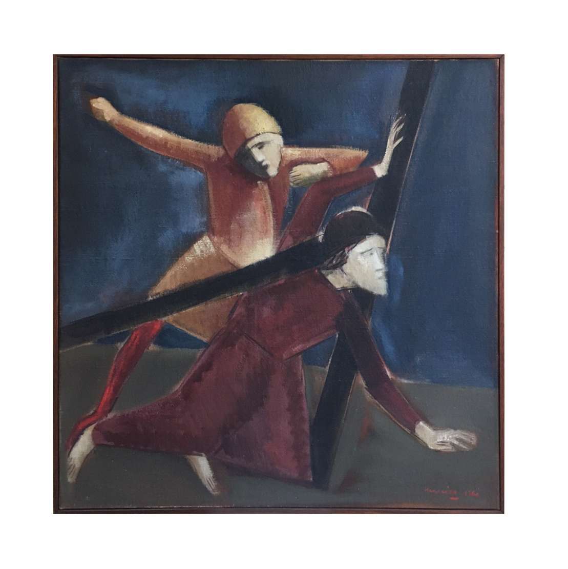 Caseína s/ cartão colado em madeira, ass. inf. dir.