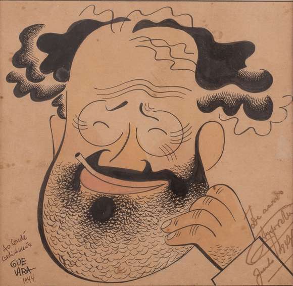 Nanquim aquarelado s/ papel, ass. dat. 1944 e com dedicatória a João Condé inf. esq. e com a inscrição Apolônio, junh...