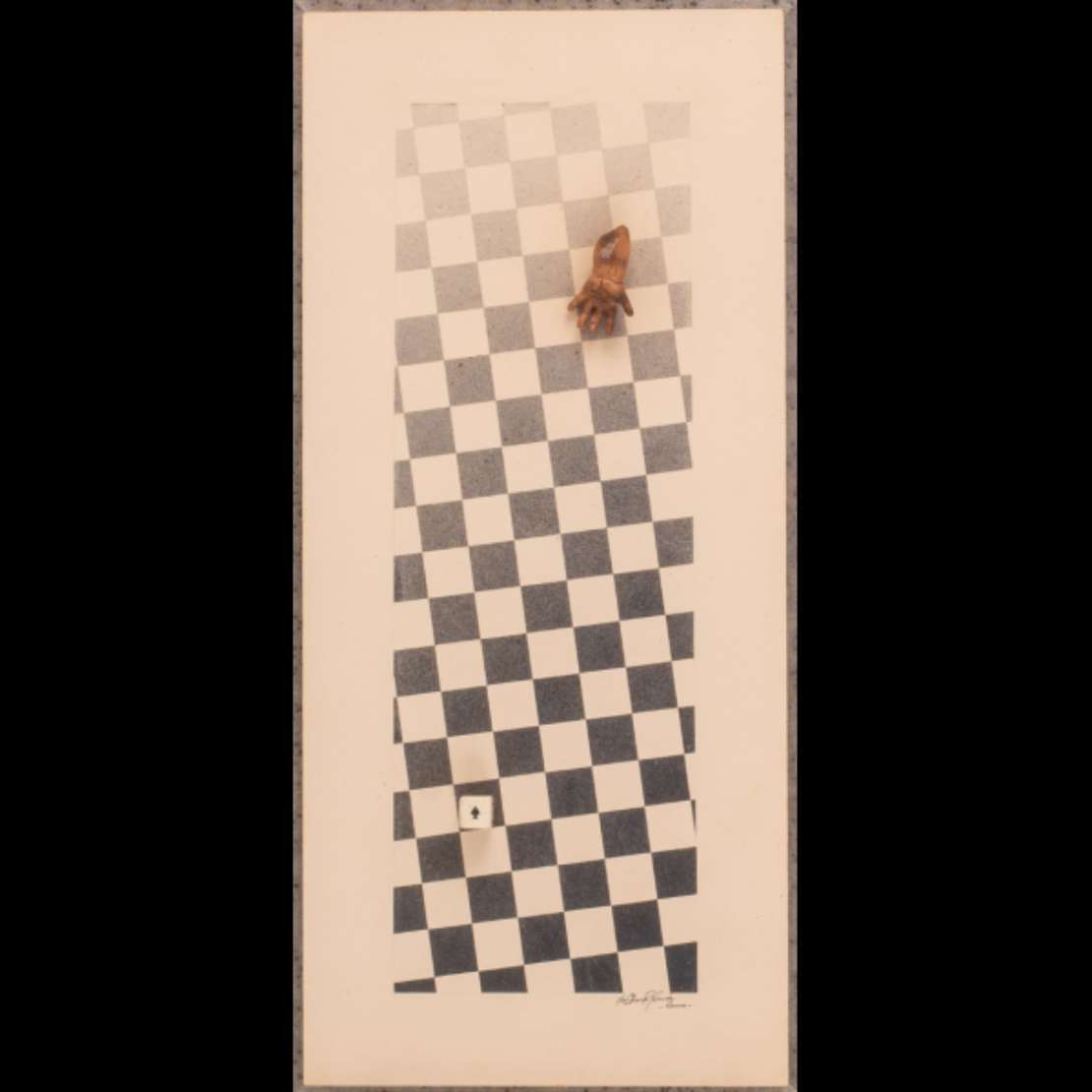 Luiz Eduardo Rezende. Lance. Litografia s/ papel com objetos colados, ass. titulado inf. dir. 56 x 31,5cm