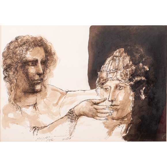 Abelardo Zaluar. Confronto. Vinil s/ tela colado em madeira, ass. dat. 83 inf. dir. e ass. dat. 1983, titulado no ver...