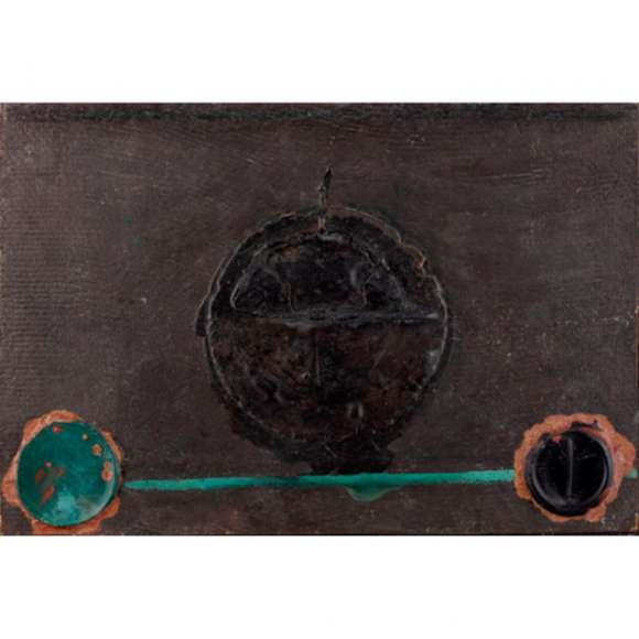 Loio Pérsio. Sem Título. Óleo e entalhes s/ madeira, ass. dat. 1963 no verso. 39 x 39cm