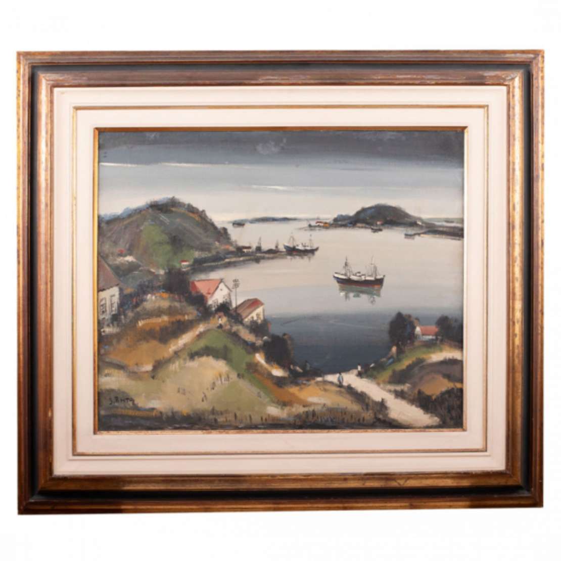 Coculilo, Francisco. Praia do Leblon com Pedra da Gávea ao fundo. Óleo s/ tela, ass. dat. 1941, sit. Rio inf. dir. 53 x 75cm