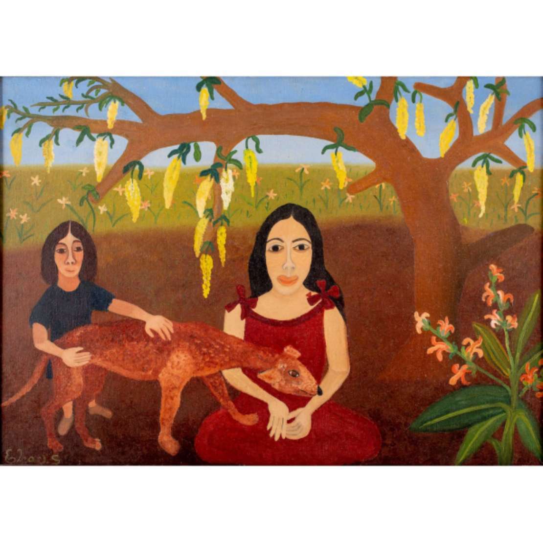 Elza O. S. Crianças com Cachorro. Óleo s/ tela, ass. inf. esq. 46 x 65cm