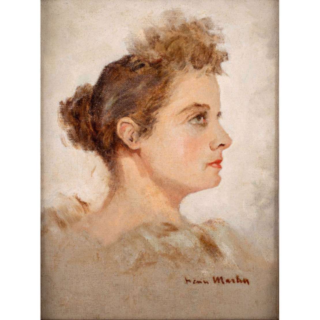 Henri Martin. Perfil de mulher. Óleo s/ tela, ass. inf. dir. 23,5 x 17,8cm